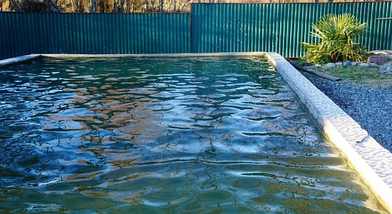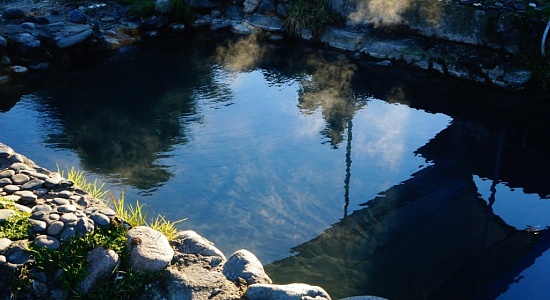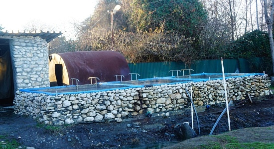 От источника вода попадает в бассейны: первый, обложенный камнем, самый горячий; второй, состоит из трех ванн разной температуры; третий, забетонированный, самый просторный. Температура от 25 до 50 градусов. Гидромассажных струй нет.