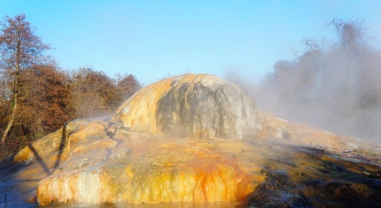 Посетители термального источника в селе Бабушара сравнивают его с Исландией или же вообще с другой планетой. А все потому, что выходящий поток воды, насыщенный минералами за годы сформировал небольшую горку необыкновенных цветов: оранжевый, желтый, белый, красный, серый, черный и все их оттенки. Из-за температуры поверхность парит и вся горка окутана горячим туманом.