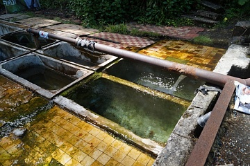 Источник пресноватой хлоридно-гидрокарбонатно-сульфатной натриево-магниево-кальциевой радоновой (минерализованной) воды. В обиходе просто радоновый источник.