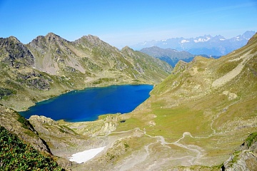 Если ваш "джип" не может подняться выше озера Башиш (турецкий угольный карьер, месторождение "Джигит"), то есть способ добраться от него до озер Голубого ожерелья Кодора пешком.