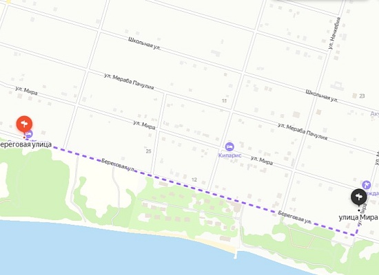От гостевого дома "Орлиный берег" необходимо повернуть налево, пройти 1,2 километра по дороге прямо, никуда не сворачивая. После магазина "Стекляшка" нужно пройти чуть вперед и повернуть налево. На повороте будет указатель. Примерно через 80 метров от поворота слева небольшое кафе.