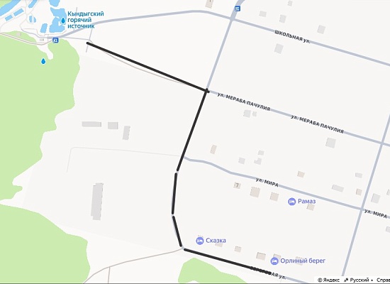 Кафе находится перед Кындыгским горячим источником, слева, не заходя на территорию. В этом же здании небольшой магазинчик.