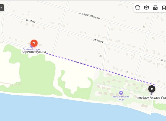 От гостевого дома "Орлиный берег" необходимо повернуть налево, пройти 800 метров по дороге и перед участковым пунктом милиции повернуть направо к пансионату "Эвкалиптовая роща". Зайти на территорию пансиона и повернуть направо. В углу большого здания сначала будет аптека, потом магазин. Если аптека закрыта, то нужно зайти в магазин и попросить ее открыть.
