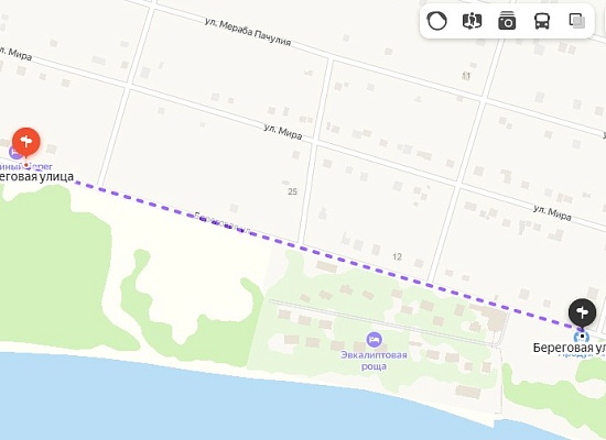 От гостевого дома "Орлиный берег" необходимо повернуть налево, пройти 900 метров до начала поворота асфальтированной дороги налево - с правой стороны будет магазин. Если в магазине никого нет, можно зайти в дом напротив и позвать тетю Лялю.